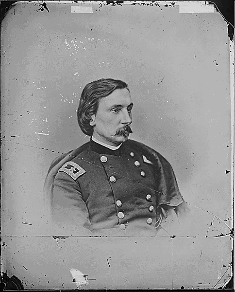 It’s a nineteenth-century twist on six degrees of separations–except Gen. Gouverneur K. Warren isn’t connected to Kevin Bacon. Along with his mustache and soul patch, he’s two degrees of separation from the Brooklyn Bridge.