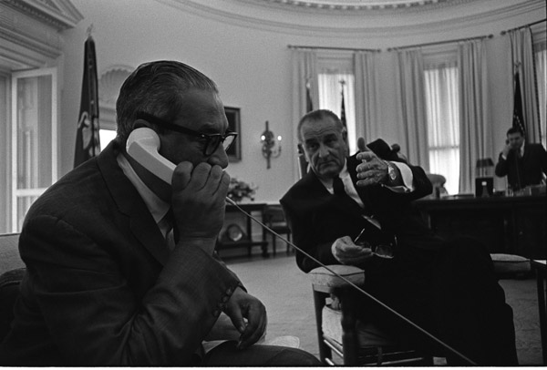 And he showed no hesitation in engaging his former colleagues directly. The famous Johnson treatment, it turns out, didn’t have to be dispensed in person; LBJ became a master of using the telephone as an instrument of national policy, and on the tapes we get to hear LBJ in full flight, making the case for or against a bill, providing blunt advice on the scheduling of votes, wheeling and dealing to secure votes, briefing congressional leaders on foreign trouble spots, sounding them out for advice, and even monitoring votes on raising the debt ceiling.