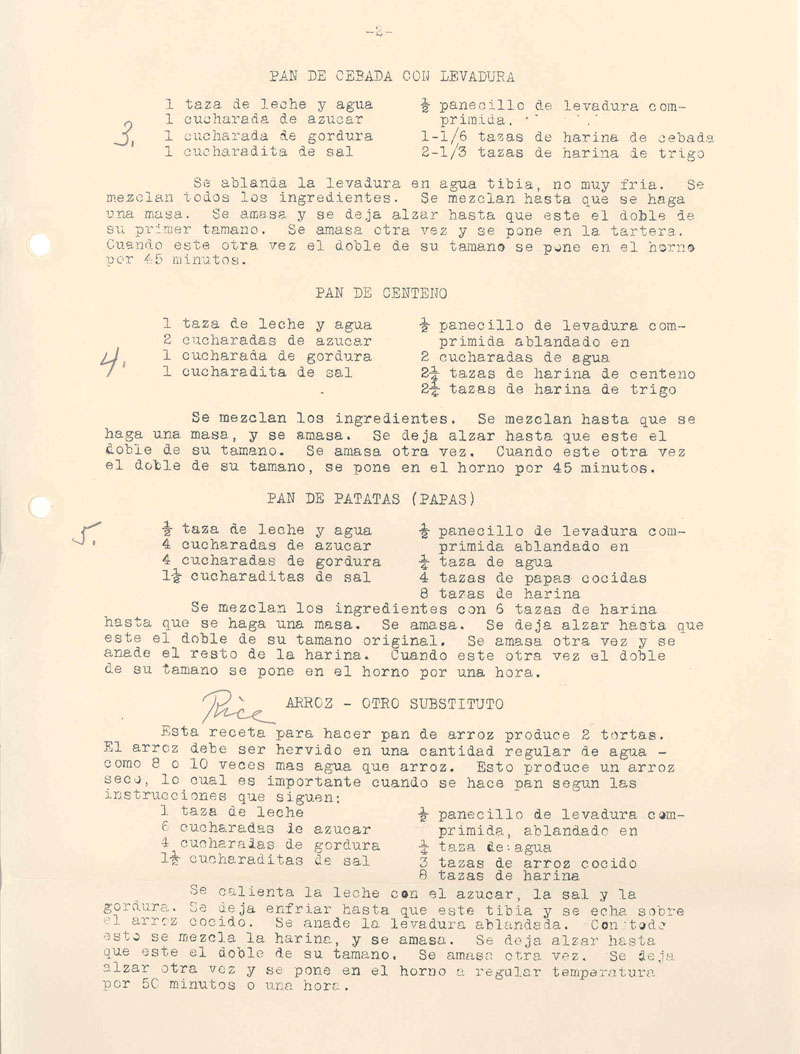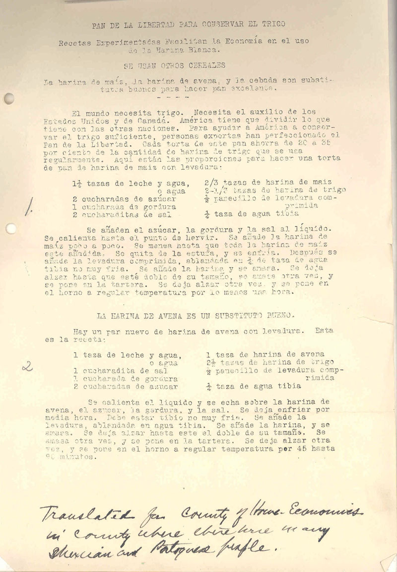 Recipes for “Pan de la libertad para conservar el trigo.” (Records of the U.S. Food Administration, RG 4, National Archives at San Francisco)