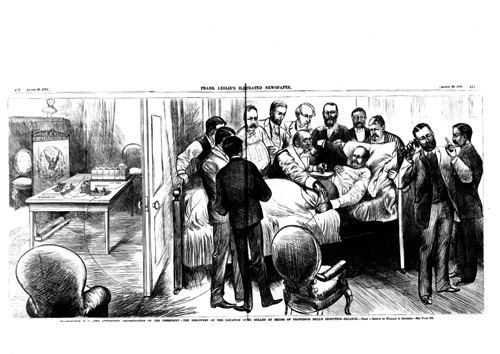 But Garfield’s ordeal was only just beginning. He was seen by Dr. D. W. Bliss, who also retained two surgeons who had been at Lincoln’s death, Surgeon General J. K. Barnes and Dr. Woodward, neither of whom had spent any recent time as physicians. Woodward even admitted at an early meeting that he knew nothing about gunshot wounds.
