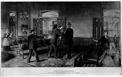On July 2, after months of increasing agitation and several aborted attempts to shoot the President with a pearl-handled pistol, Charles Guiteau finally mortally wounded the President as he waited for a train in a mostly deserted waiting room. Guiteau was taken into custody as he left the station.