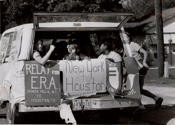 Photograph of Equal Rights Amendment (ERA) Posters on the Back of a Station Wagon, c. 1977. (ARC Identifier 7452296)