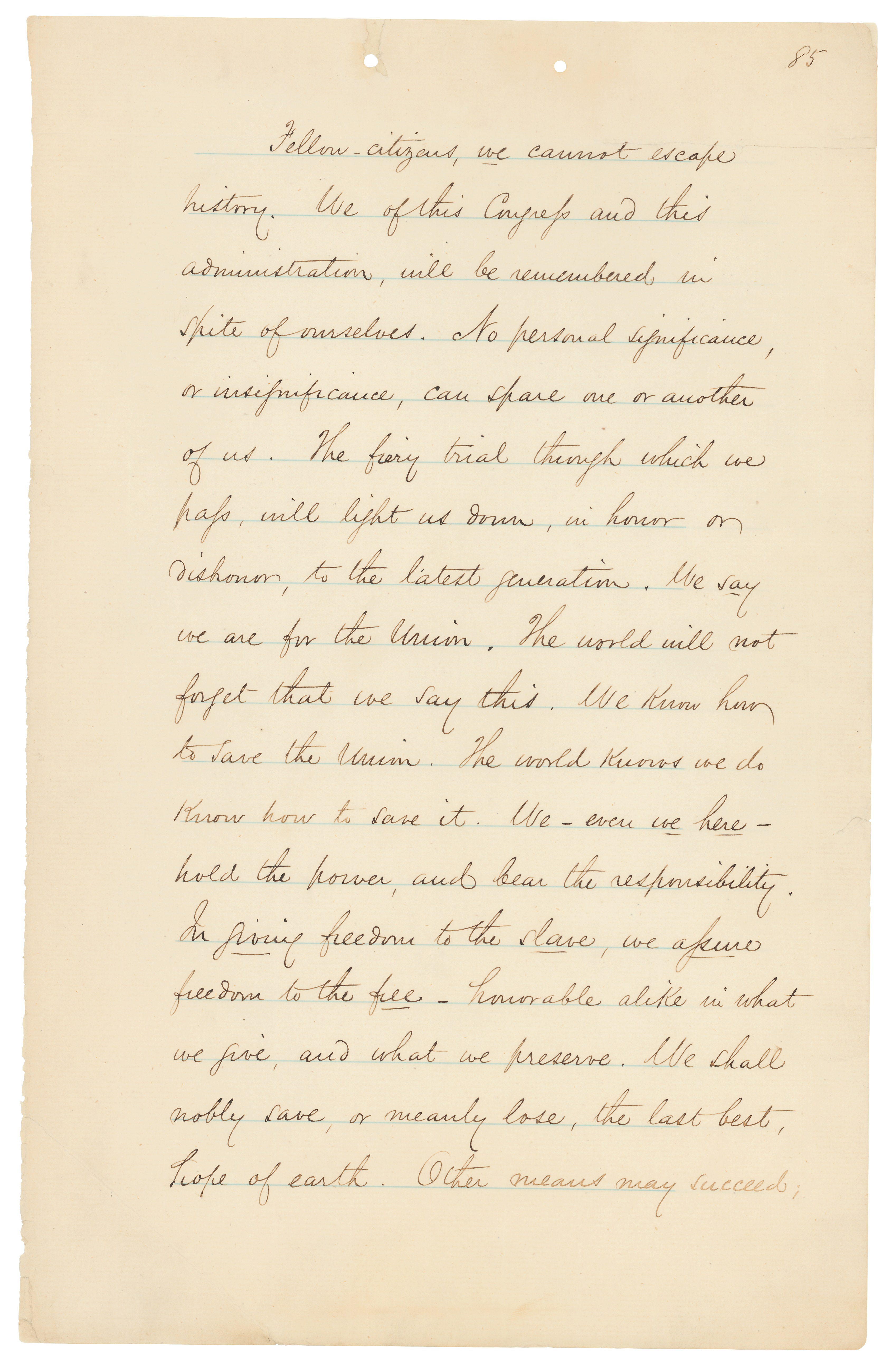 Fellow-citizens, we cannot escape history. We of this Congress and this administration, will be remembered in spite of ourselves. No personal significance, or insignificance, can spare one or another of us. The fiery trial through which we pass, will light us down, in honor or dishonor, to the latest generation.