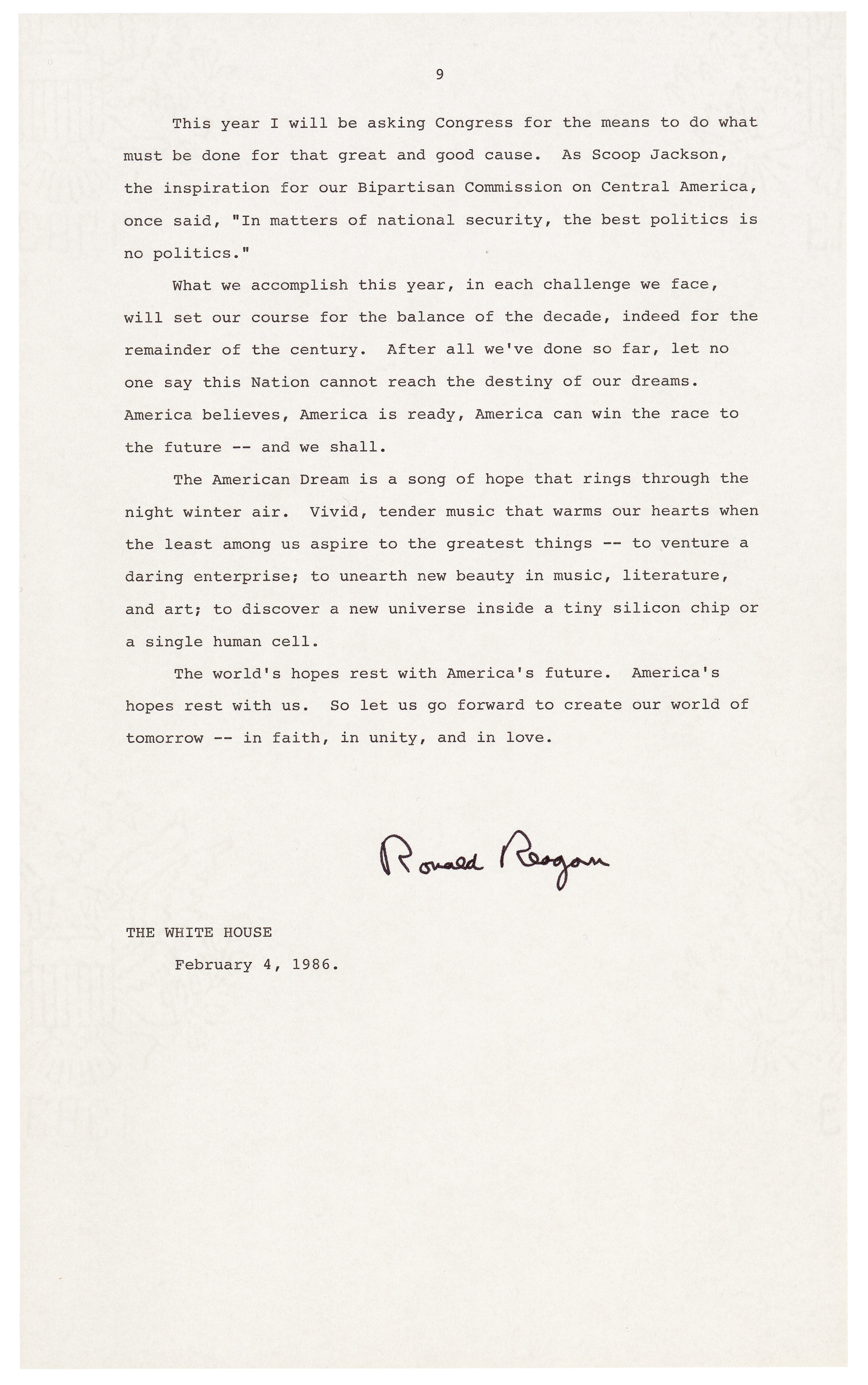 President Ronald Reagan’s 1986 State of the Union address was originally scheduled for January 28, 1986. However, that day the Challenger space shuttle exploded. Reagan postponed his speech for a week in response to the accident. On February 4, Reagan began his message by paying tribute to “the brave seven” Challenger crew members.