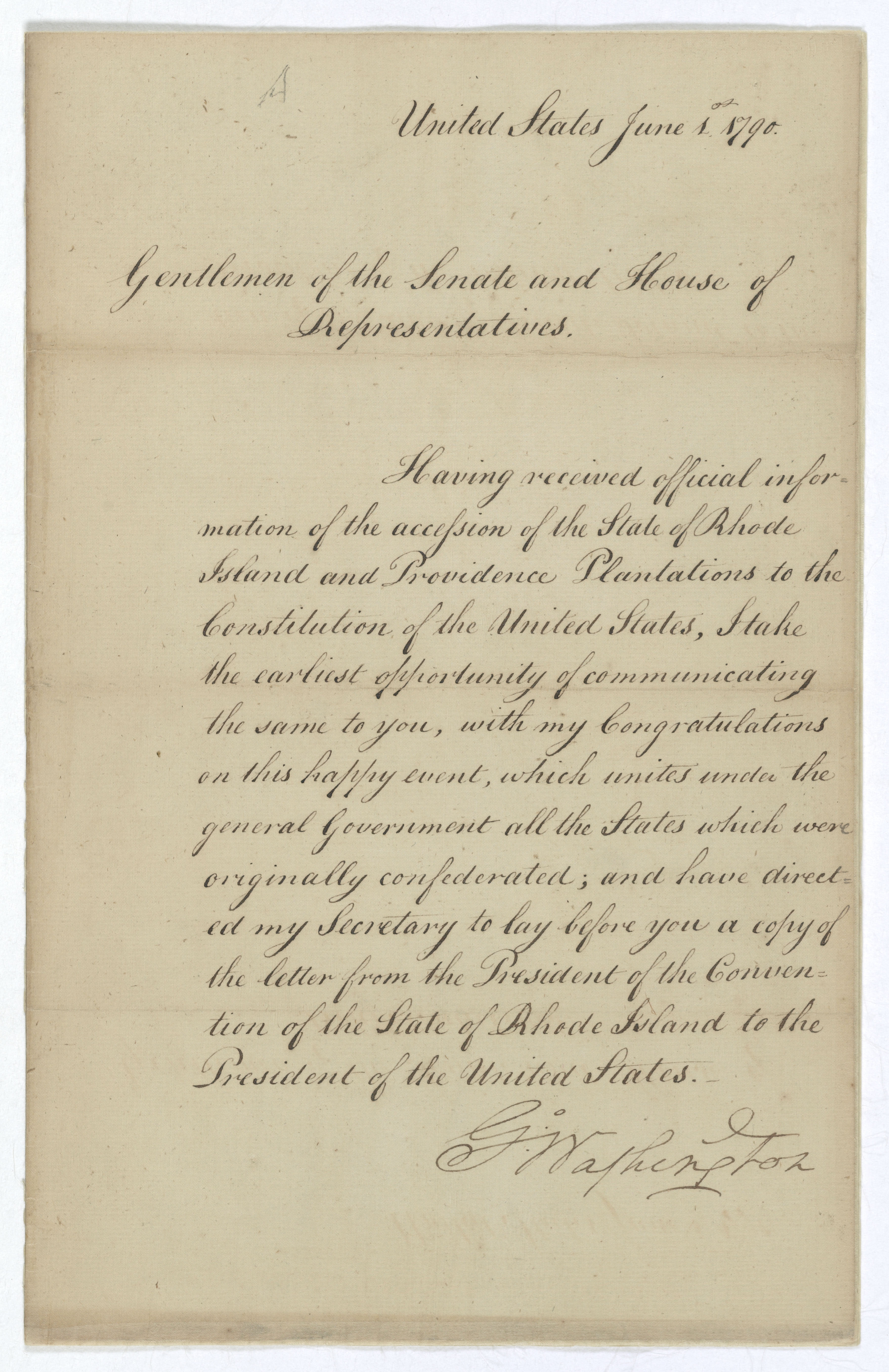 The First Congress met for the first time in March of 1789, and that September the Governor of Rhode Island wrote to Congress, explaining why the people of his state still had “not separated themselves from the principles” of the old Confederation. He explained that they wanted “further checks and securities” limiting federal power, before “they could adopt it.”