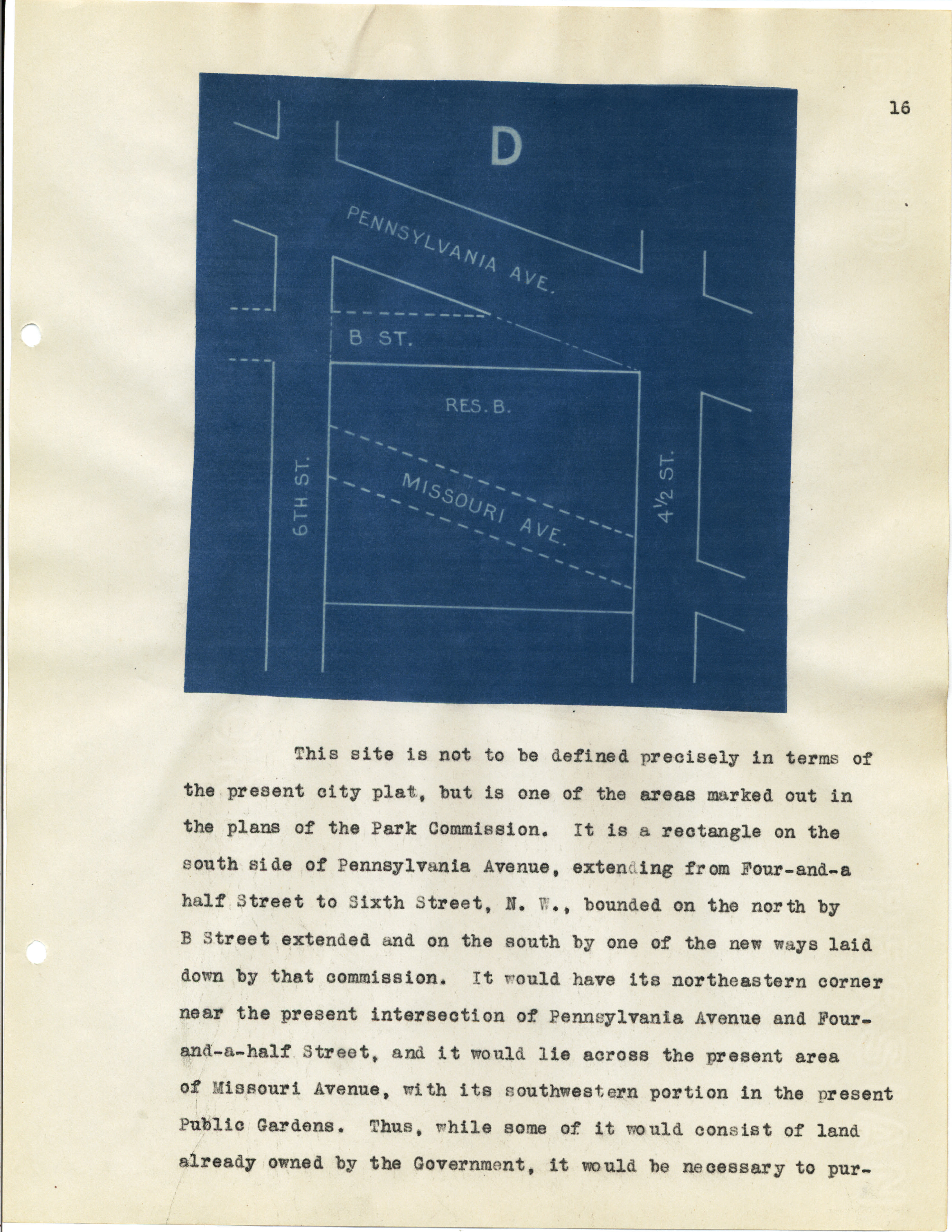J. Franklin Jameson papers showing various sites for a National Archives Building, originally submitted March 4, 1913, revised April 30, 1918. (National Archives Identifier 12078357)