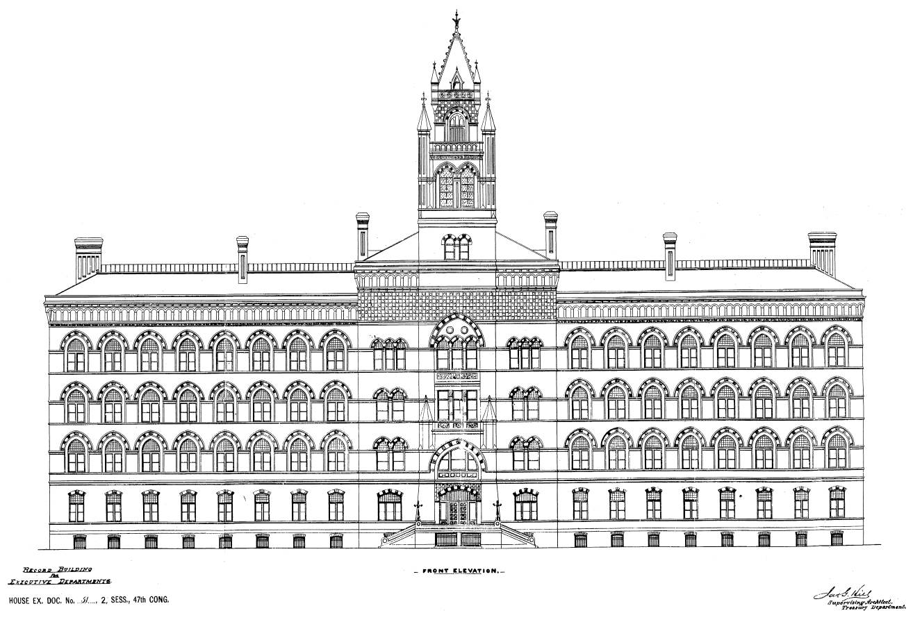An 1883 plan for a Hall of Records from the Supervisory Architect of the Treasury Department. (U.S. Serial Set)