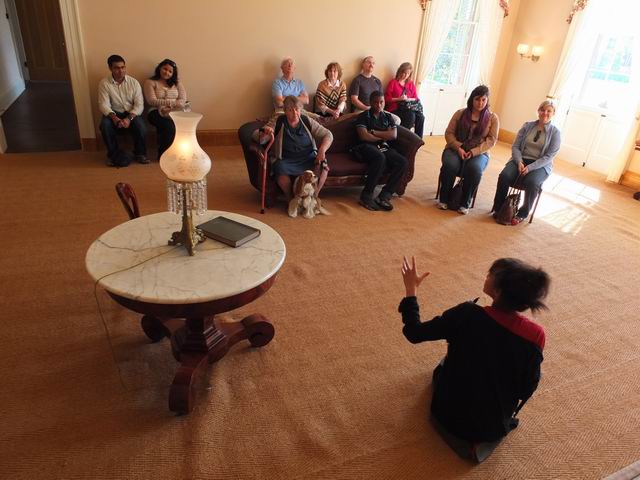Then, we headed up the stairs holding the same wood railing there in the Lincoln years. Callie described this as our “handshake with Lincoln.” Upstairs, we entered the room where it is thought he drafted the Emancipation Proclamation in the late summer of 1862. The rooms are sparsely decorated with only a few original pieces, the rationale being that the visitor’s experience is mostly about Lincoln’s ideas and not so much his belongings.