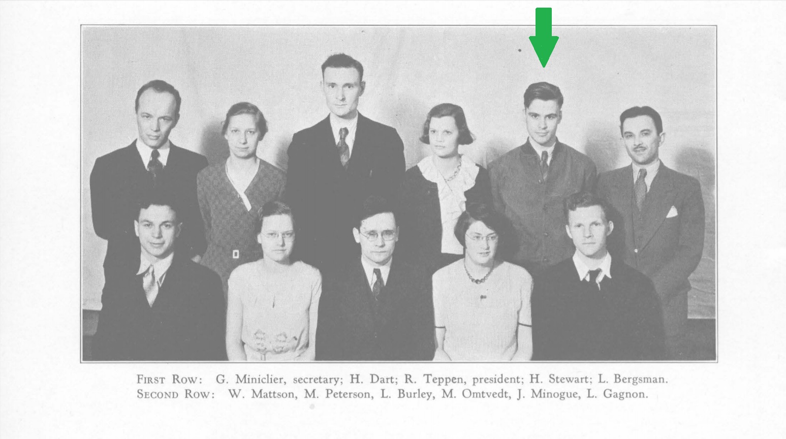 James A. Minogue (arrow) as a member of the Student Council of Duluth State Teachers College (now the University of Minnesota, Duluth), 1932.