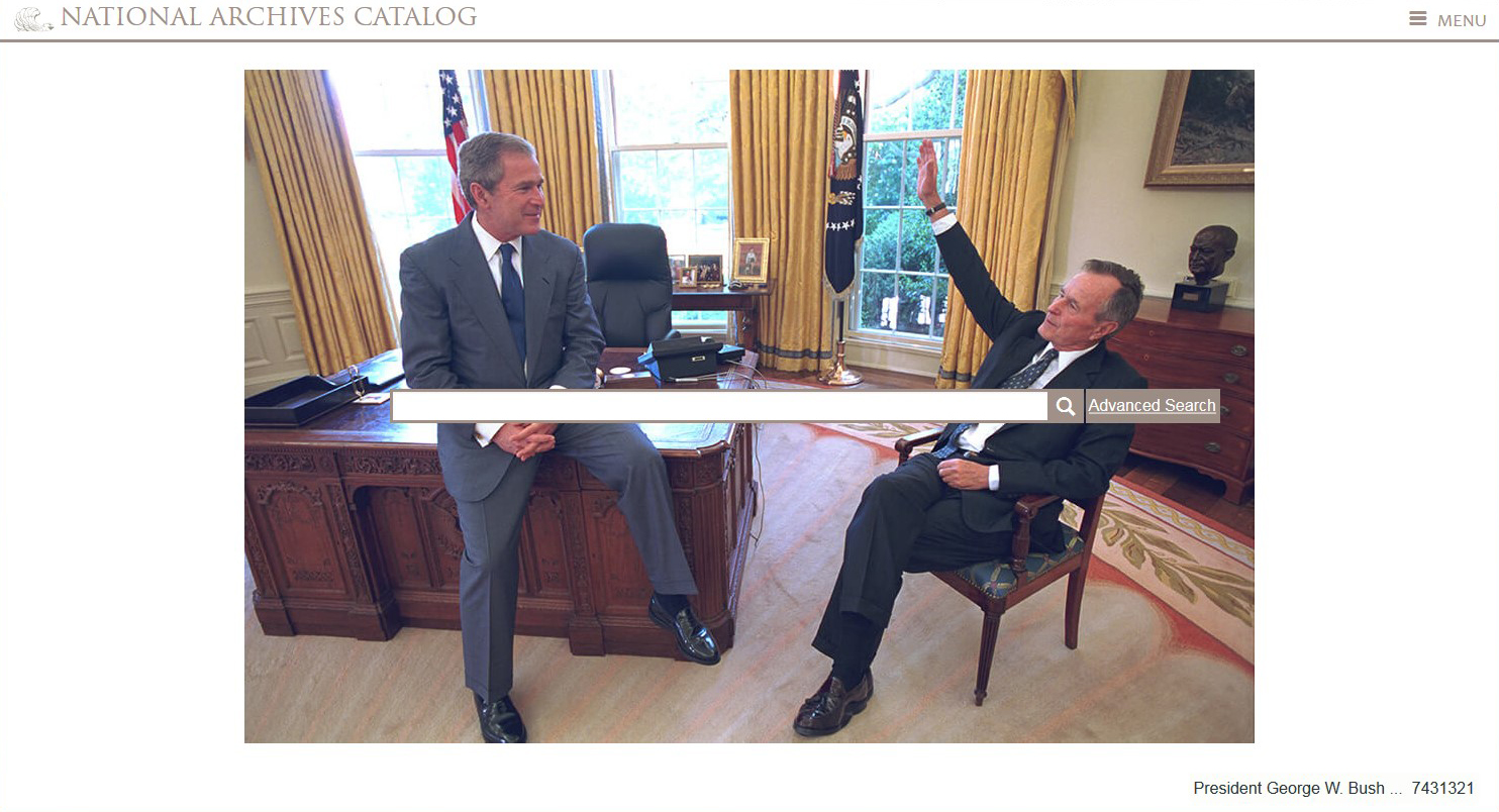 The National Archives Catalog home page (https://catalog.archives.gov/)