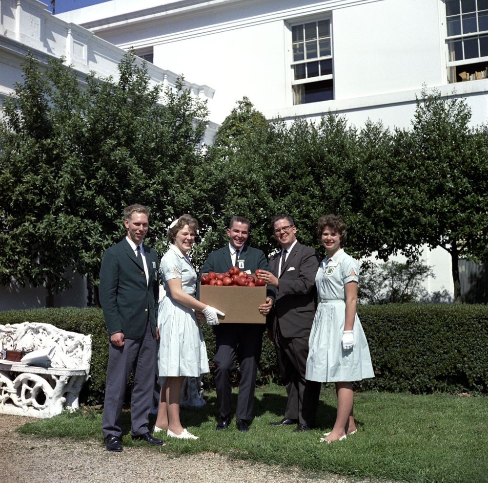Whenever we see this photograph, we want to go apple picking. While wearing white gloves. Because, the 1960s.
