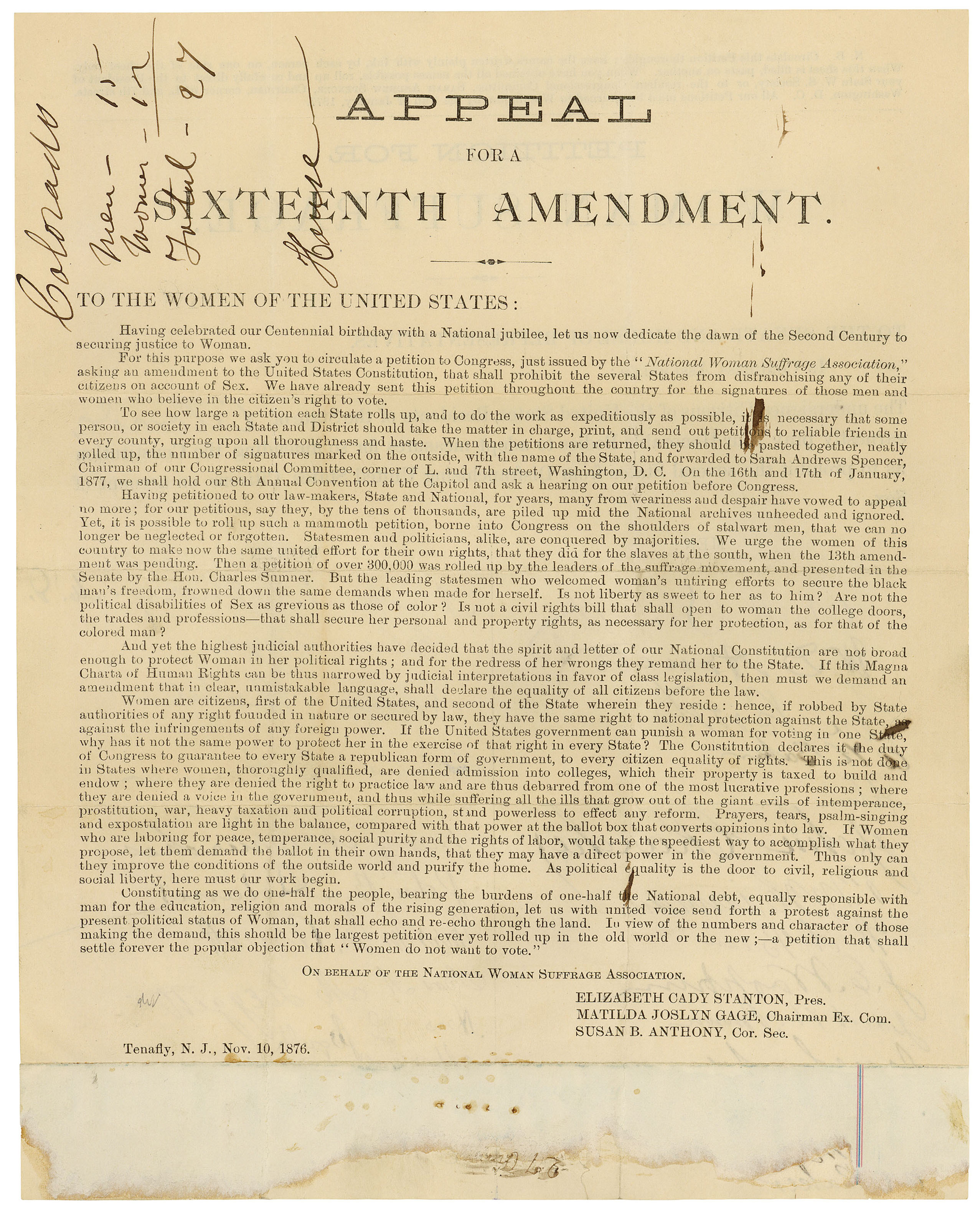 With over a hundred members from almost every state, the National Woman Suffrage Association was among the most powerful women’s group to call for change.