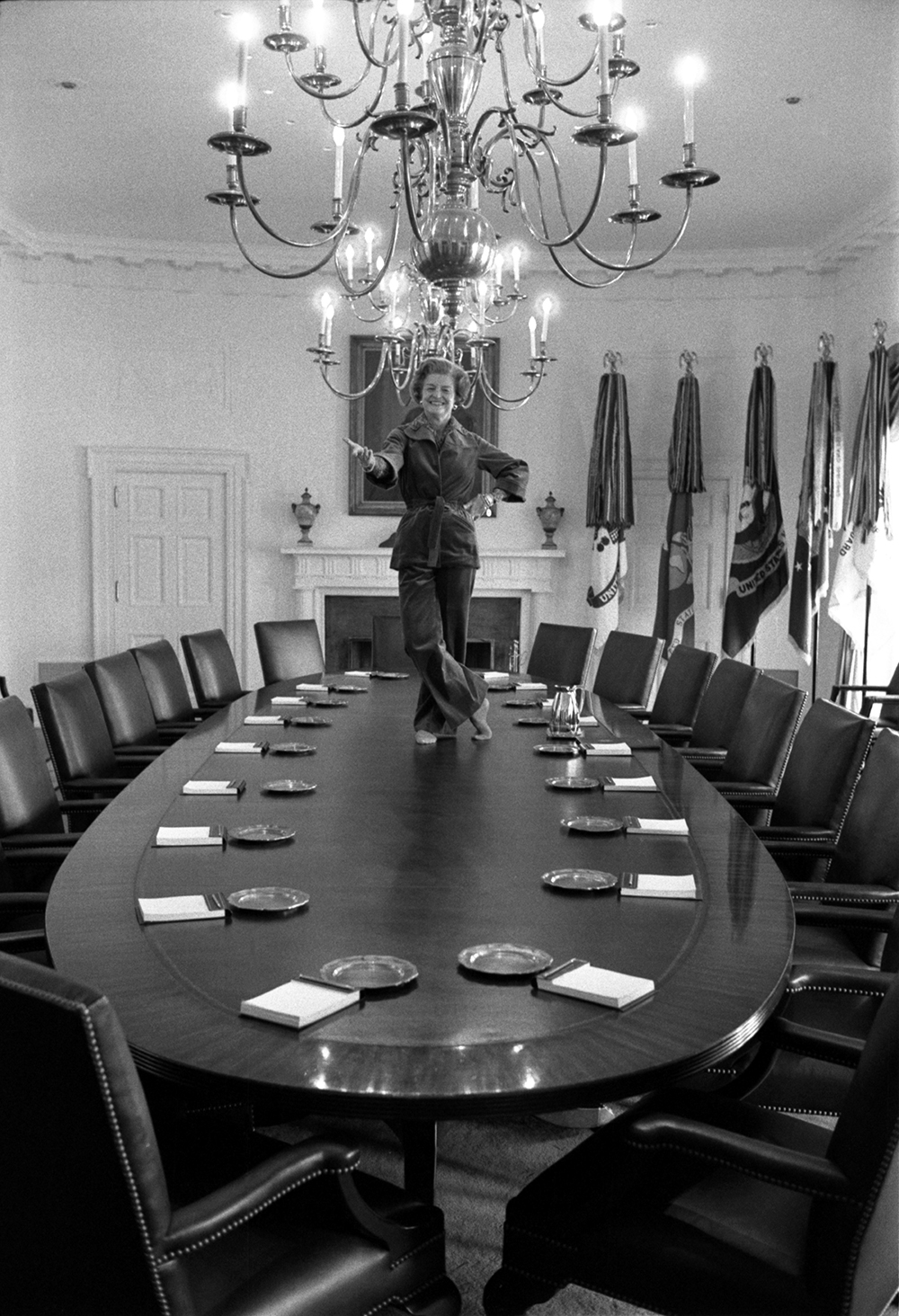 Betty Ford dances on the cabinet room table during her last full day as first lady, January 19, 1977. (Gerald Ford Presidential Library, National Archives)
