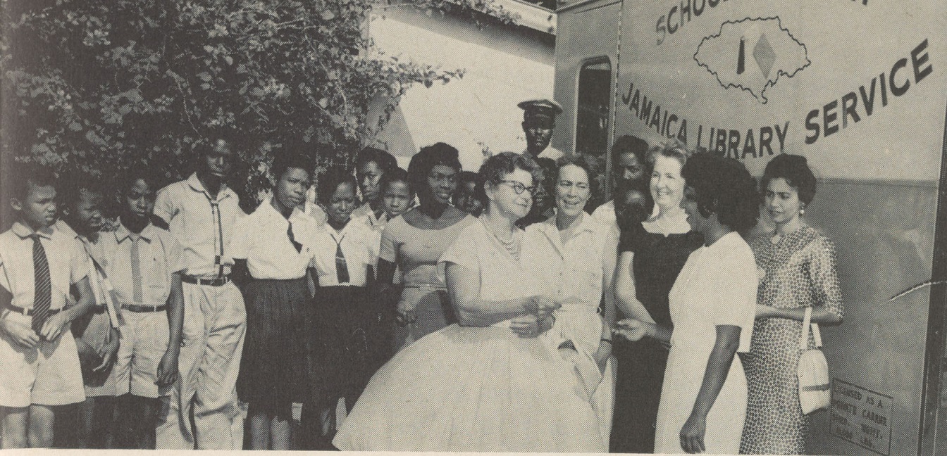 We’d also be happy to ride along with Miss Yulerette Smith (seen here in the middle), Bookmobile Librarian, of Jamaica!