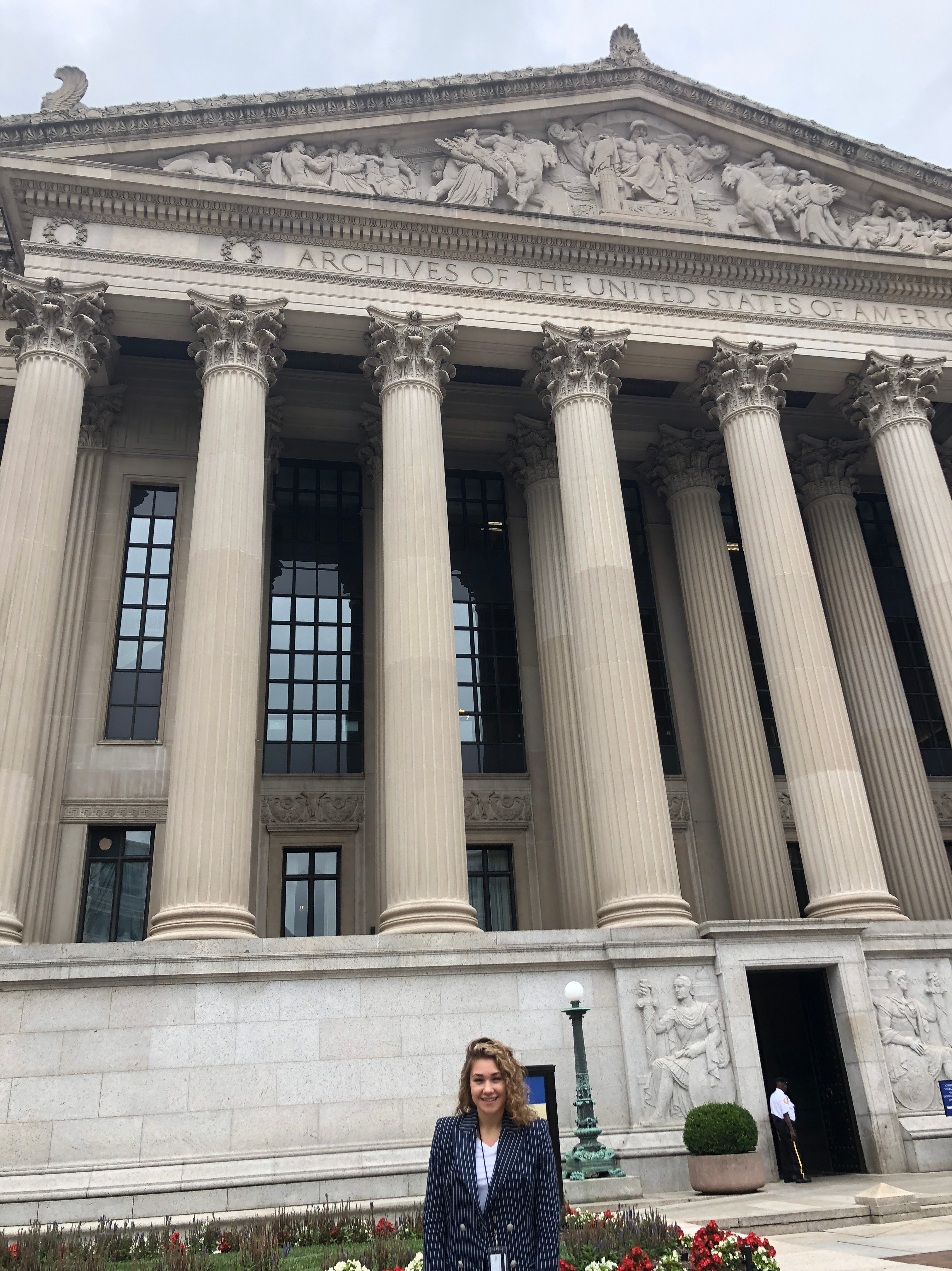 Discovering new facts: In my internship, I learn new facts about the National Archives everyday! For example, I recently discovered that the two statues flanking the Pennsylvania Avenue entrance of the building represent the future and the past, respectively. These two feature quotes from both Shakespeare and Confucius.