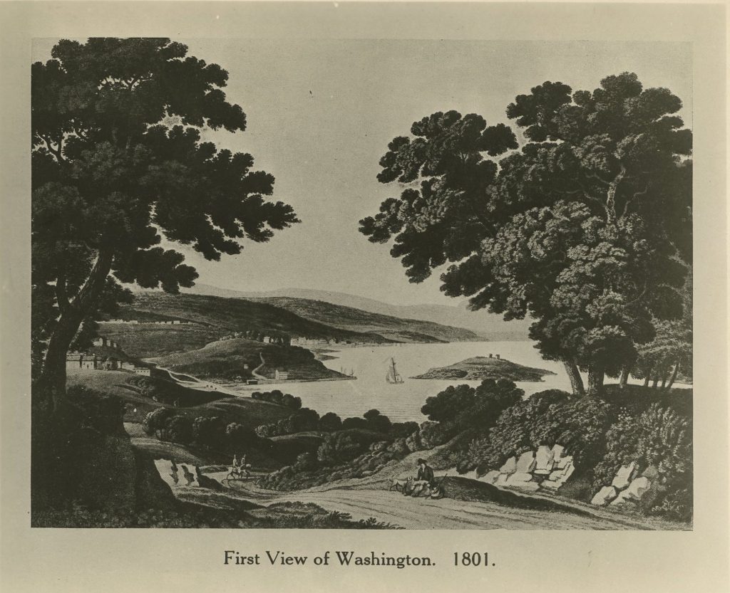 Engraving of the “First View of Washington, 1801.” (Records of Temporary Committees, Commissions, and Boards)
