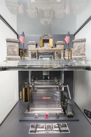 The model operated every 30 minutes, and was on public display until the National Archives Building underwent a major renovation in the early 2000s when the actual Mosler Vault was removed and replaced. The model was put into storage and is currently on display for staff in the building’s basement.