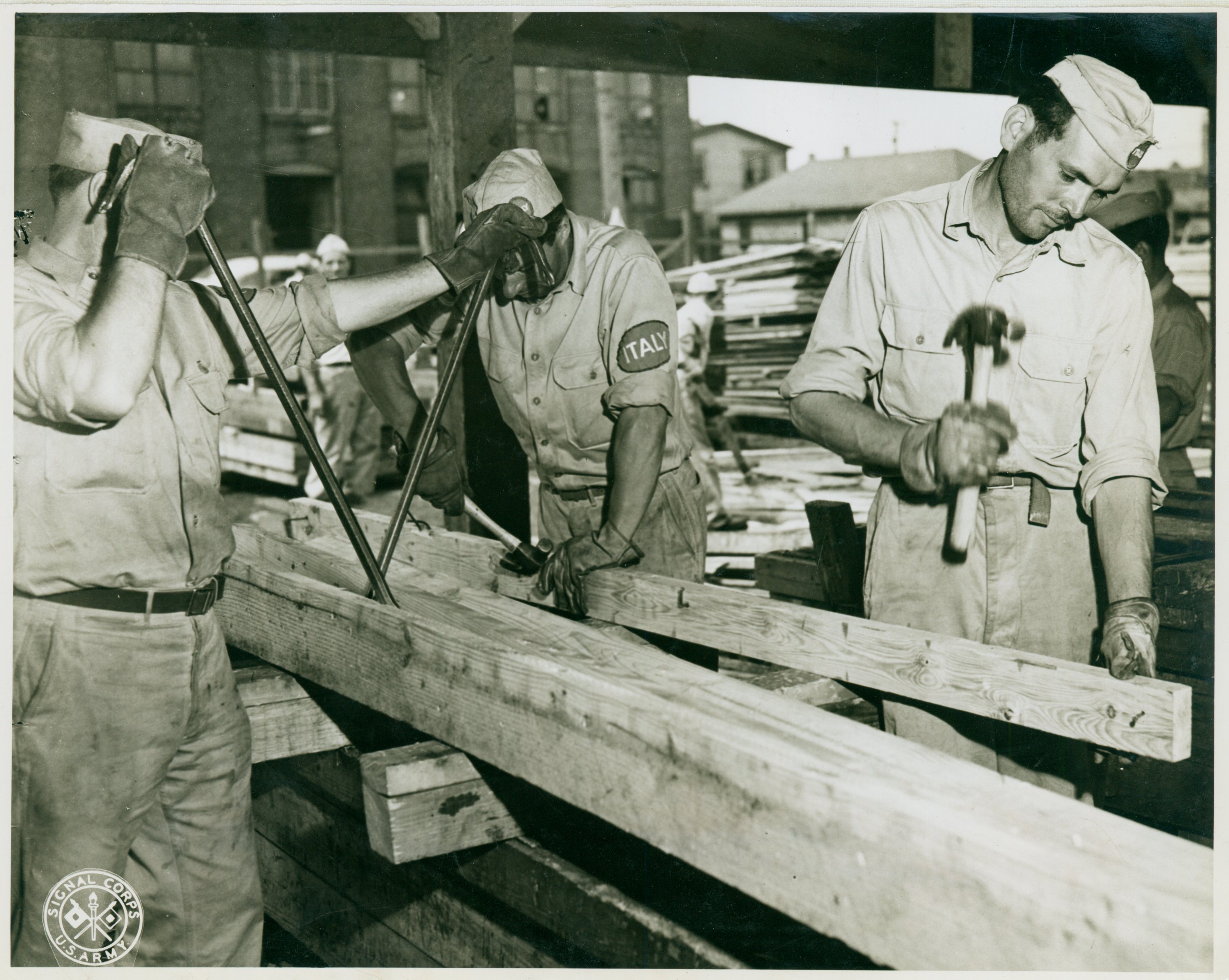 Italian Prisoner of War (POW) lumber salvage workers, 1944. (National Archives Identifier 7269117)