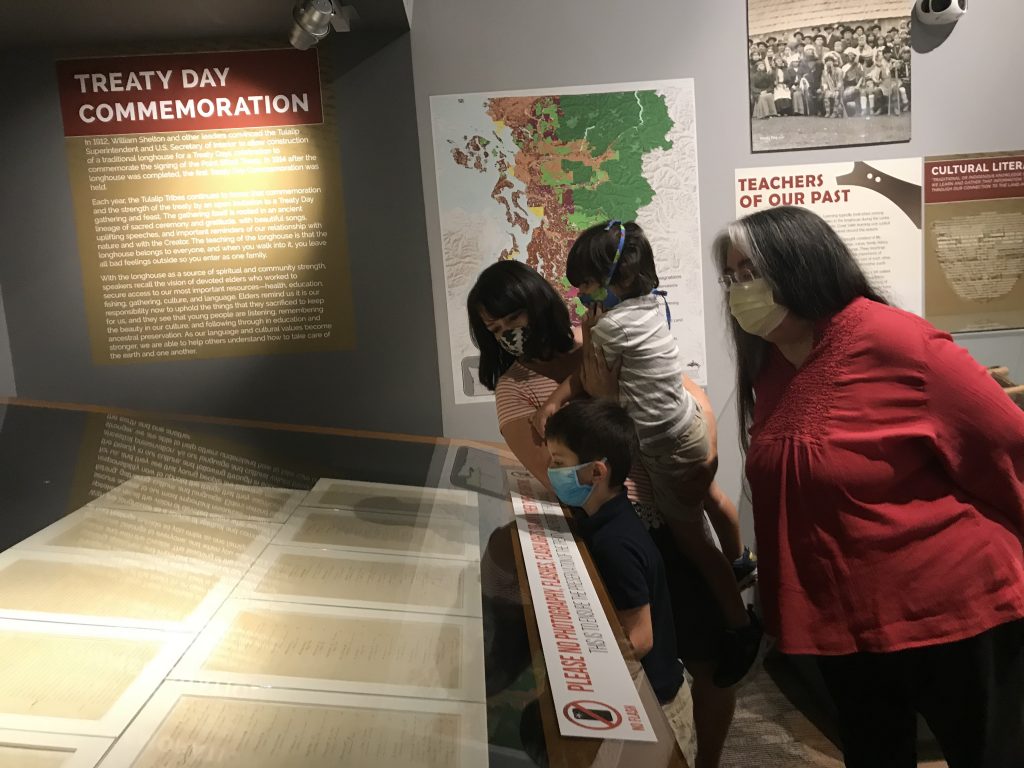 Installation of the treaty took place on January 21, which was facilitated by two curatorial staff and two Tulalip tribal maintenance staff employees. All of the hard work and careful planning culminated with a private tribal event on Wednesday, January 22. The exhibit opened to the public on Saturday, January 25, 2020, and the treaty was on public view until March 17, when the museum made the decision to close due to the outbreak of the COVID-19 virus. The treaty lay off exhibit and protected until the museum reopened to the public on August 4. The center made another formal request to extend the loan period, which the National Archives granted. The original treaty will be on display at the Hibulb Cultural Center until October of 2020.