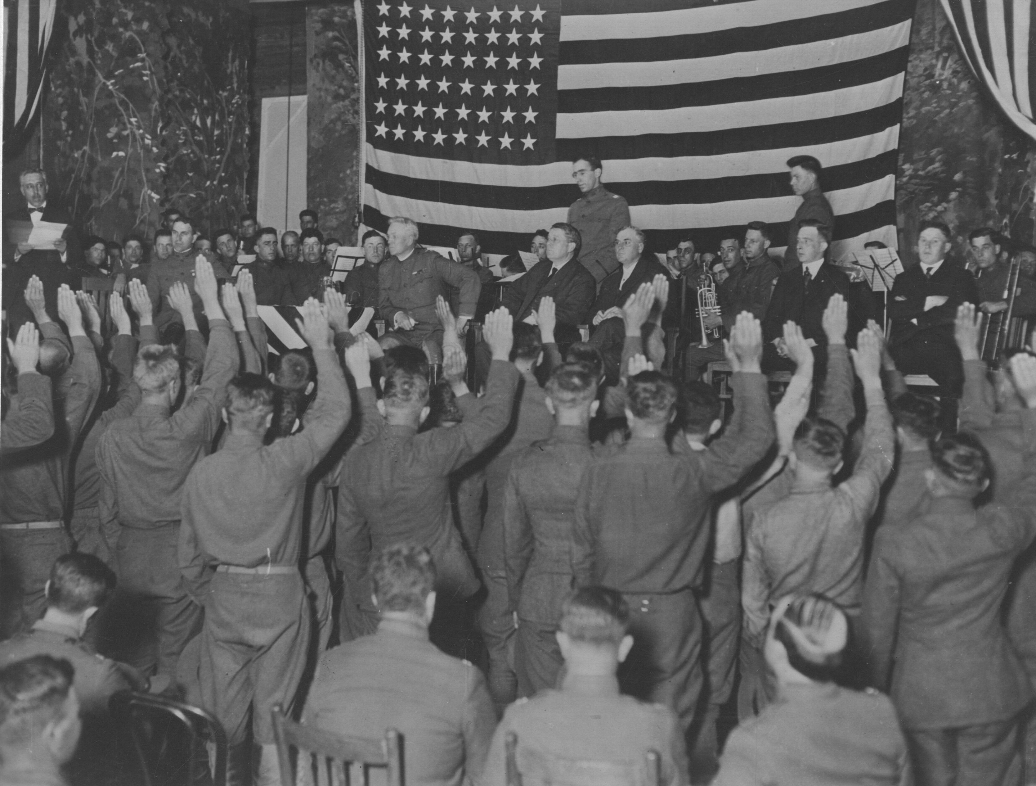 In an effort to speed up naturalization proceedings, the Bureau of Naturalization sent examiners to military bases and enlisted temporary examiners to assist in conducting large, open-air naturalization ceremonies before soldiers were shipped off to the front lines. Eventually, more than 300,000 soldiers and veterans of World War I became U.S. citizens under these laws.