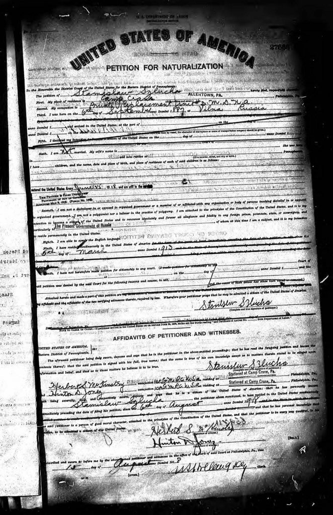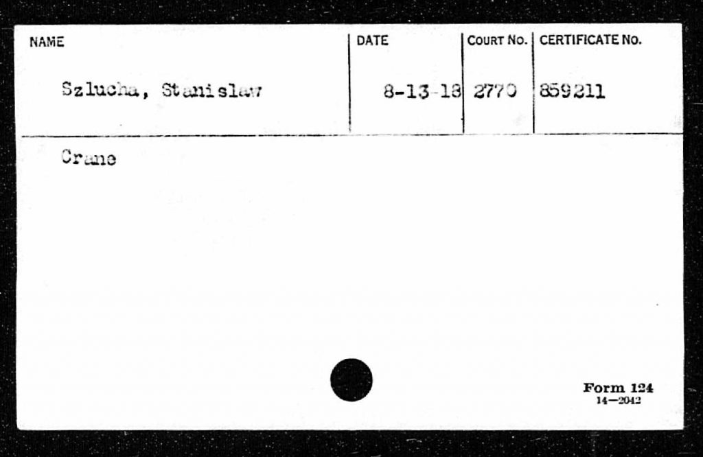 The index card of Stanislaw Szlucha lists court no. 2770, the records of which are held by the U.S. District Court for the Eastern District of Pennsylvania (EDPA), according to the Directory. Because EDPA naturalization records have been digitized and are available online through our digitization partners (Ancestry, FamilySearch, Fold3), Stanislaw Szlucha’s naturalization record was easy to find online.