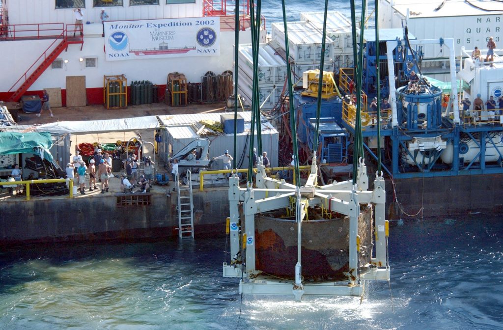 The Monitor foundered off Cape Hatteras during a storm on December 31, 1862. The wreck was rediscovered in 1973, and her gun turret, guns, gun carriages, and other parts of the ship were recovered in 2001–2002 through a joint effort between the U.S. Navy and the National Oceanic and Atmospheric Administration (NOAA).