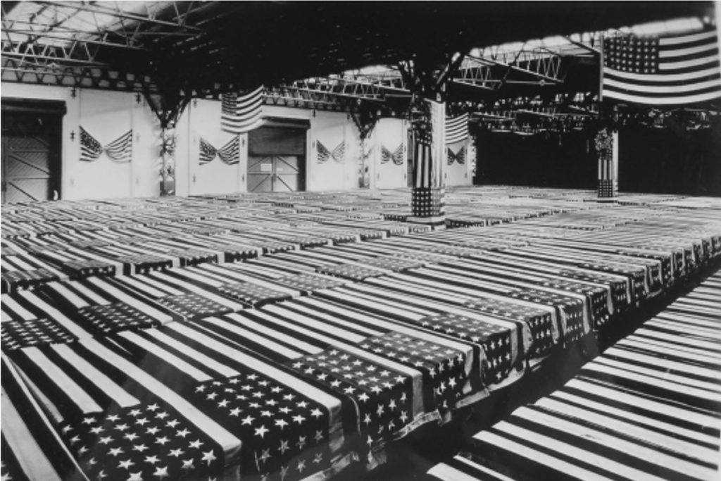 Caskets of U.S. service members assembled in Antwerp, Belgium, for shipment home. (Records of the U.S. Army Signal Corps, National Archives)